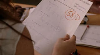que Aaron mira hacia atrás y le pide un lápiz. La profesora le pregunta